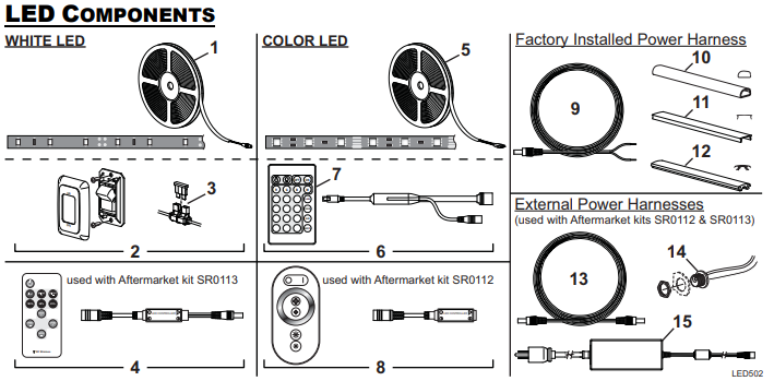| 16 | SR0113 | White LED Upgrade Kit | Not Shown | 4 |